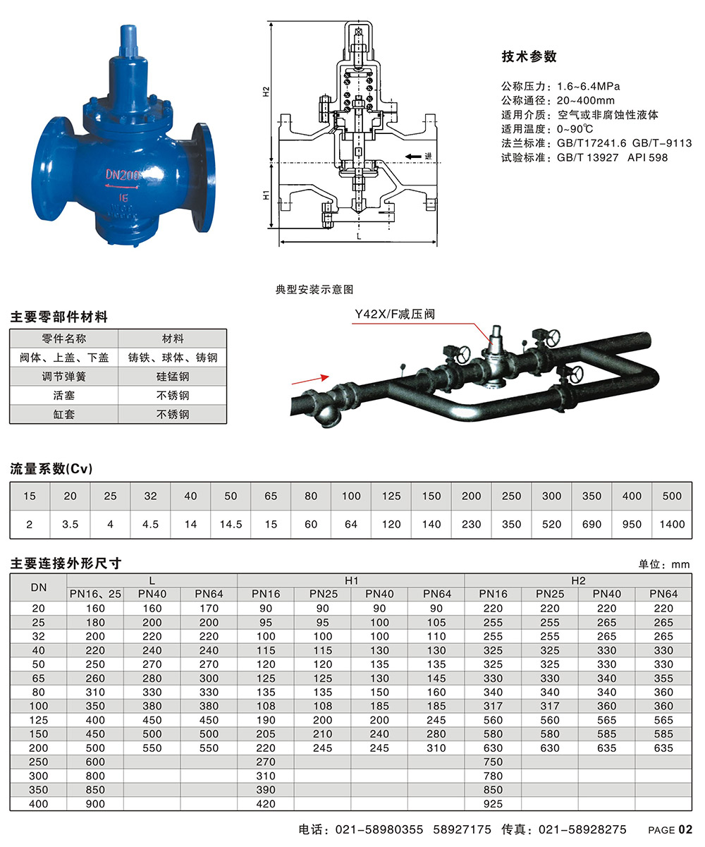 Y42X/F型減壓穩壓閥,是一種以活塞代替膜片的壓力調節閥。此膜片式提高壽命三倍以上??趶叫∮贒N50的建議選用本公司創新型產品YG42X高靈敏度減壓閥,口徑大于等于DN50的建議選用Y42X(法蘭連接)的活塞型減壓閥。該類閥門屬于可調節型減壓閥,閥后的壓力可根據需要調節,投入使用后閥后壓力始終減至并穩定在設定值,不因閥前壓力、流量的波動而改變。閥門選材優質,性能可靠,使用壽命長。