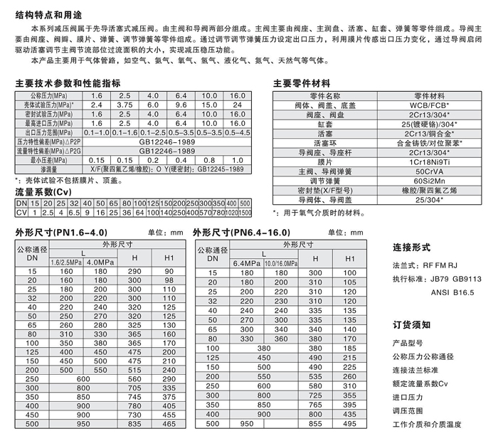 本產品調壓、穩壓動作靈敏平衡,適用于氣體和液體介質的管路使用。連接形式法蘭式:FFRF執行標準:JB79GB9113、ANSI816.5主要技術參數和性能指標